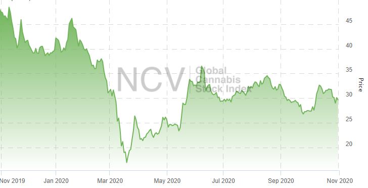 The stocks that performed the best were likely driven by the upcoming elections. Harvest, which has extensive operations in Arizona, led the way, though the stock remains down 52% in 2020. TerrAscend, which has medical cannabis operations in New Jersey, which is likely to legalize, has been one of the best performing stocks this year, up 164% through the end of October. Canopy Growth, which has an investment in TerrAscend through exchangeable shares and an agreement to potentially acquire Acreage Holdings and also has loans to both companies, likely benefited from speculation that the Senate could change control, which would enable it to enter the U.S. potentially. The stock is down 11% in 2020. Curaleaf, which is exposed to both Arizona and New Jersey and also has operations in other Northeast markets, has gained 49% this year.