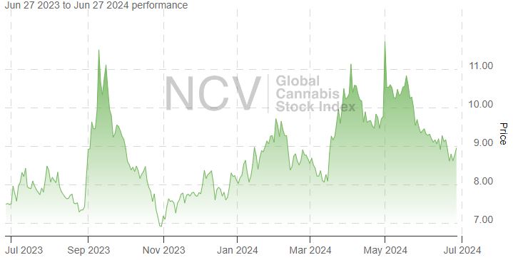 Tomorrow ends trading in June and marks the midpoint of 2024. This has been a rough month, but cannabis stocks are still up year-to-date. Of course, they are up less than stocks as measured by the S&P 500. Here is a look at the last year, which has been volatile: