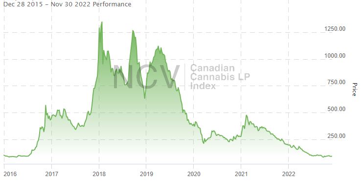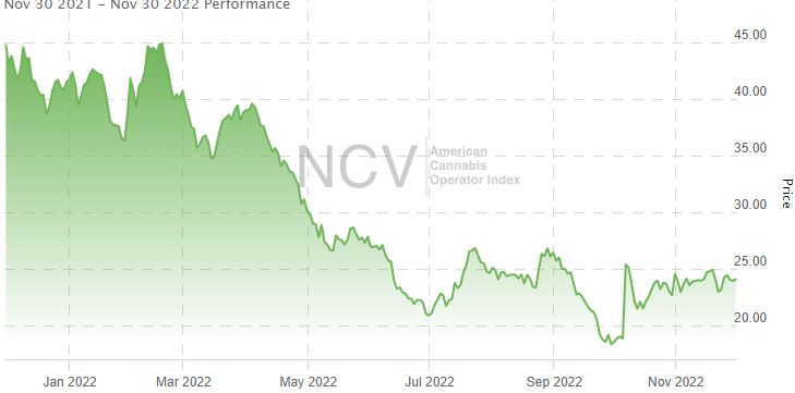 As we described in a previous article, the Global Cannabis Stock Index added to its 17.1% rally in October during November, increasing 3.7%. The index is still down 58.4% in 2022.