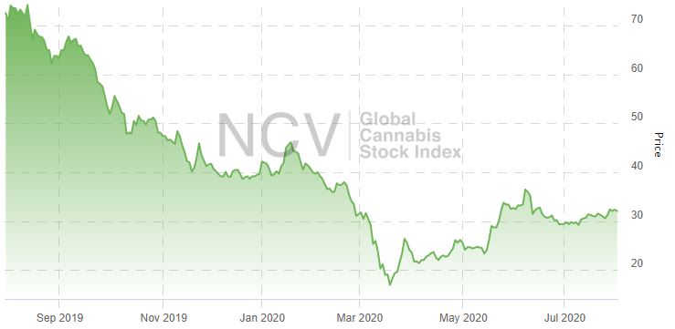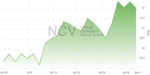 Cannabis stocks recovered nearly all of the losses from June during July, with the Global Cannabis Stock Index increasing 9.0% to 32.07: