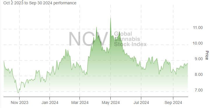 Kaival Brands was weak in August and fell 26.6% during Q3. iPower, which exited the index today, dropped 13.0% during the quarter. Trulieve is up a lot in 2024 and rallied 31.9% during Q3.