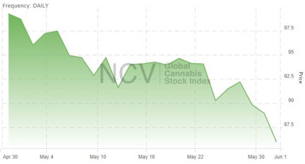After a 57.4% rebound in Q1 followed by a narrow decline in April, Cannabis stocks, as measured by the Global Cannabis Stock Index, gave up substantial ground in May, declining 13.3%: