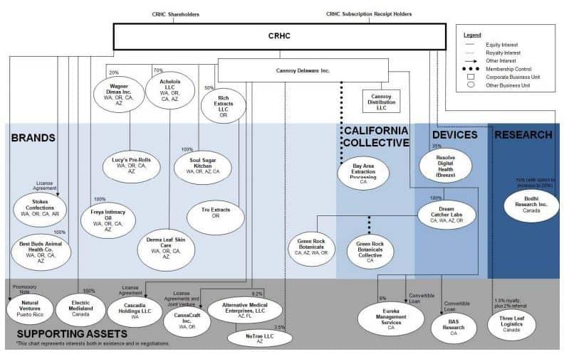 CannaRoyalty characterizes its investments, which have been primarily in the United States, by categories that include research, devices, brands and strategic investments. Despite its short history, it has invested in, partnered with or acquired over two dozen companies. While many of the deals are with start-ups, CannaRoyalty has a stake in some established and well-known companies, including Eureka Group Holdings, which provides management services to Oakland’s Magnolia Wellness, and a licensing agreement with AbsoluteXtracts and Care by Design to extend the brands from California to Washington and Canada. The corporate website and the CSE Filing Statement provide extensive detail on each of the investments to date.