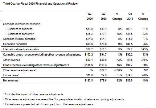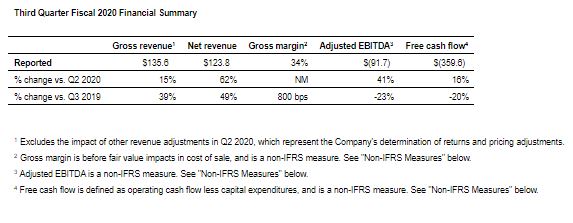 Canopy Growth Reports Third Quarter Fiscal 2020 Financial Results