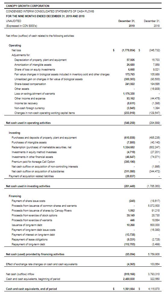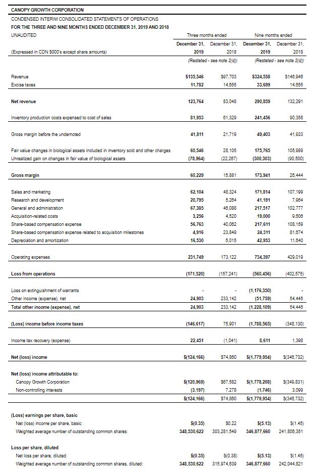 This press release is intended to be read in conjunction with the Company’s Unaudited Condensed Interim Consolidated Financial Statements (“Financial Statements) and Management Discussion & Analysis (“MD&A) for the three and nine months ended December 31, 2019, which will be filed on SEDAR (www.sedar.com) and will be available at www.canopygrowth.com. The basis of financial reporting in the Financial Statements and MD&A is in thousands of Canadian dollars, unless otherwise indicated.