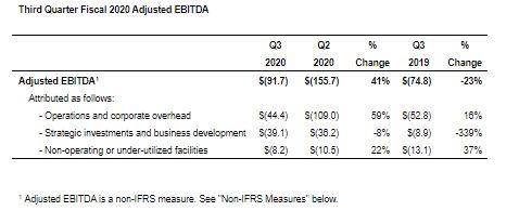 Adjusted EBITDA, a non-IFRS measure, is a key operational metric that does not have any standardized meaning prescribed by IFRS and may not be comparable to similar measures presented by other companies. Adjusted EBITDA is calculated as earnings before interest, tax, depreciation and amortization, share-based compensation expense, fair value changes and other non-cash items, and further adjusted to remove acquisition-related costs. The Company attributes Adjusted EBITDA to its operations and corporate overhead, strategic investments and business developments, and non-operating or under-utilized facilities. The Adjusted EBITDA reconciliation is presented within this news release and explained in Management’s Discussion & Analysis under “Adjusted EBITDA (Non-IFRS Measure)”, a copy of which will be filed on SEDAR.
