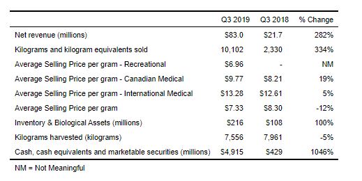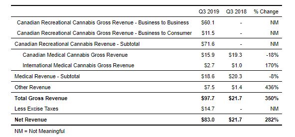 Canopy Growth Corporation Reports Third Quarter Fiscal 2019 Financial Results: Gross Sales of $98M; Net Revenue hits record $83M