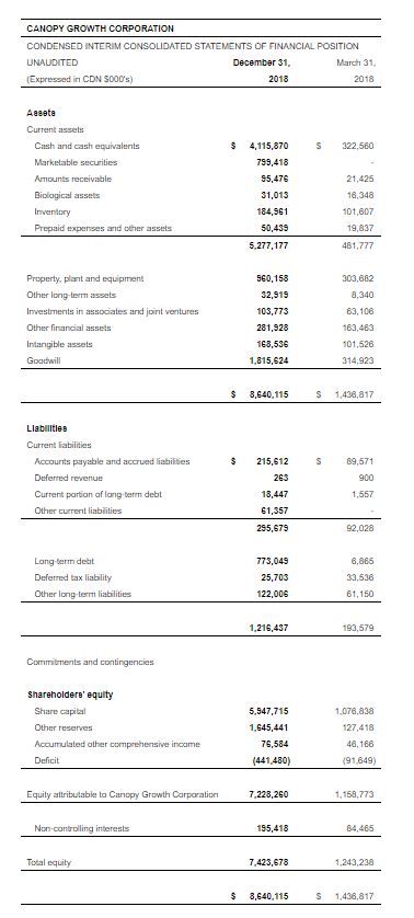 Other income of $235.2 million for the three months ended December 31, 2018 was primarily made up of fair value changes on financial assets and financial liabilities. The amount includes a fair value gain of $185.8 million arising from the decrease in the fair value of the senior convertible notes from the end of the second quarter to the end of the third quarter and a fair value gain of $36.4 million on financial assets, principally the TerrAscend and Slang warrants.