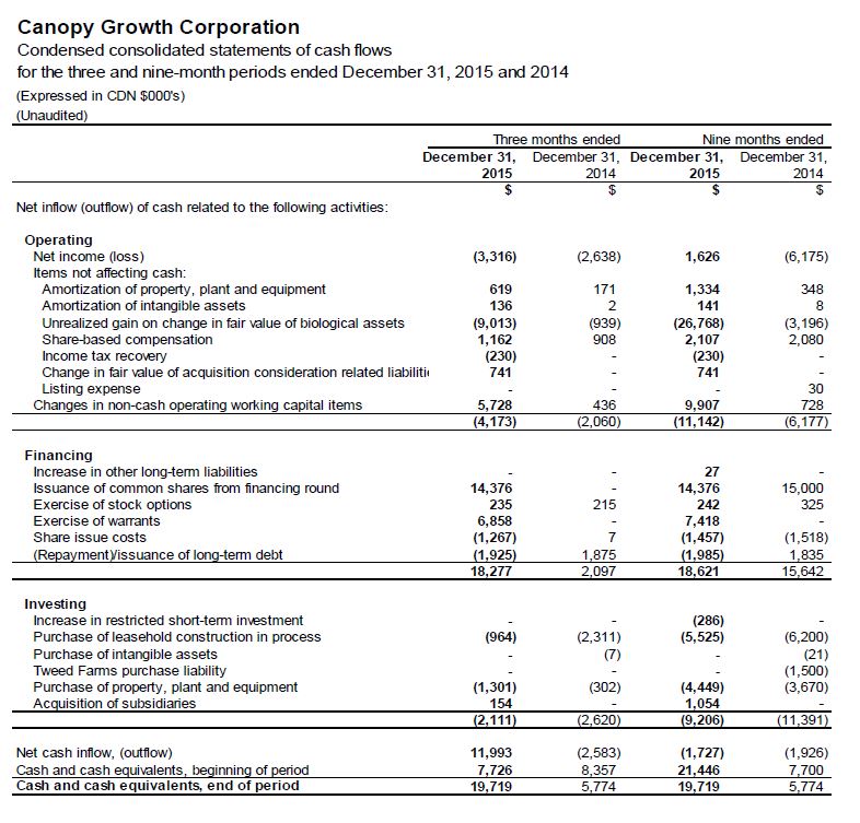 Original press release: http://www.newswire.ca/news-releases/canopy-growth-corporation-reports-third-quarter-fiscal-year-2016-financial-results-570079951.html