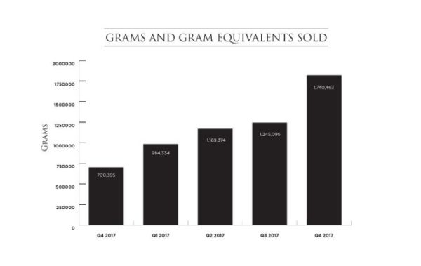 During the fiscal year 2017, the Company has sold 5,139 kilograms and kilogram equivalents at an average price of $7.40 per gram compared to 1,696 kilograms and kilogram equivalents at an average price of $7.34 per gram in the same period last year.
