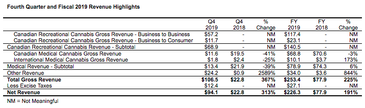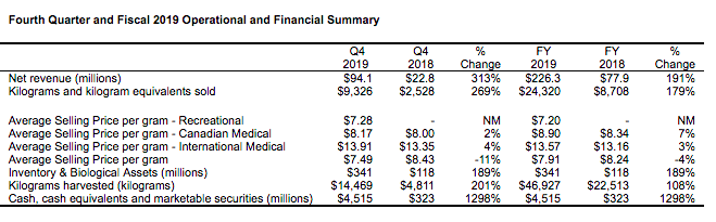 Canopy Growth Corporation reports fourth quarter and fiscal 2019 results with annual sales of $226.3M