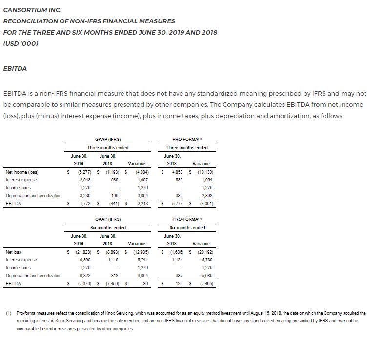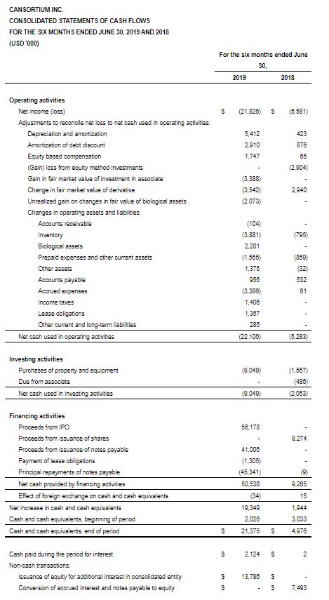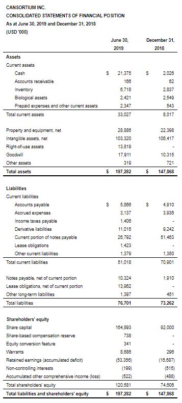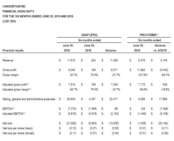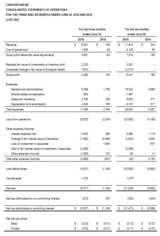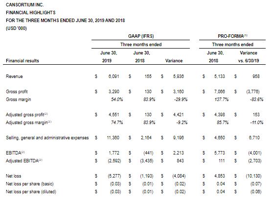 MIAMI, Aug. 29, 2019 /CNW/ – Cansortium Inc. (CSE:TIUM.U) (OTCQB: CNTMF) (“Cansortium” or the “Company”), a vertically-integrated, global provider of premium-quality medical cannabis, today announced financial results of the second quarter ended June 30, 2019. The Company’s unaudited condensed interim consolidated financial statements and accompanying notes, along with the Management Discussion and Analysis (MD&A) are available under the Company’s profile on SEDAR at www.sedar.com and are also accessible through a link on the Investor Relations section of the Company’s website at www.cansortium.com.