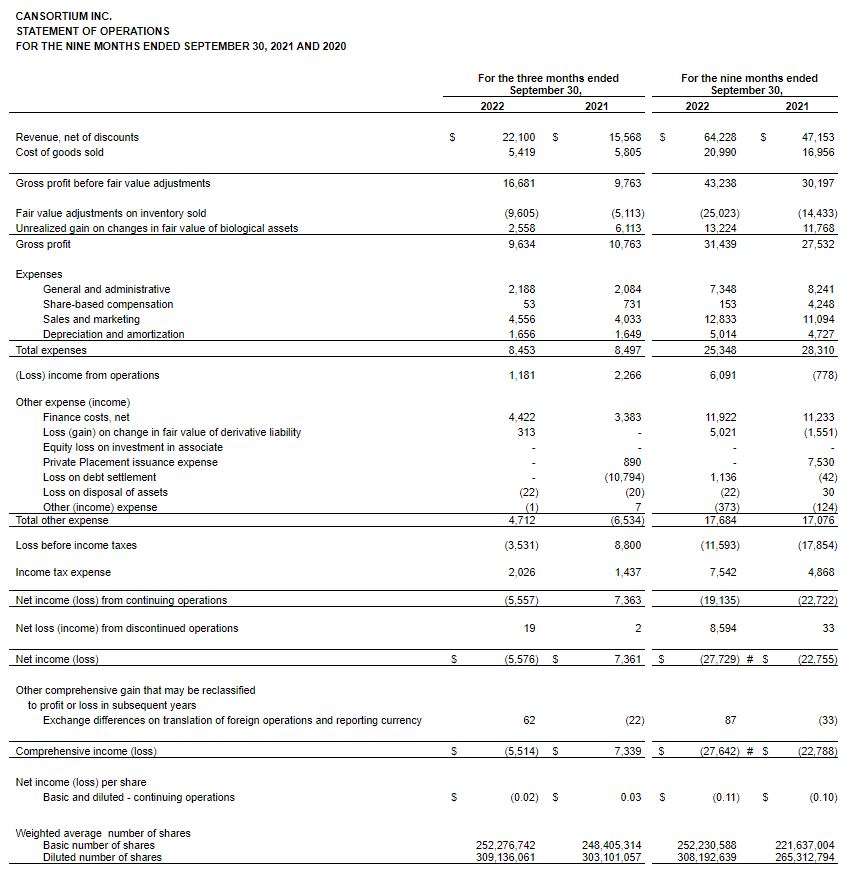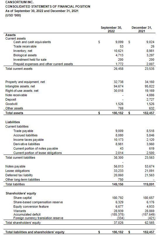 MIAMI, Nov. 29, 2022 /PRNewswire/ – Cansortium Inc. (CSE: TIUM.U) (OTCQX: CNTMF) (“Cansortium” or the “Company”), a vertically-integrated cannabis company operating under the Fluent™ brand, today announced financial and operating results for the third quarter ended September 30, 2022. Unless otherwise indicated, all results are presented in U.S. dollars.