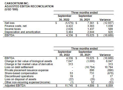 ¹Adjusted gross profit is a non-IFRS financial measure that does not have any standardized meaning prescribed by IFRS and may not be comparable to similar measures presented by other companies. The Company calculates adjusted gross profit from gross profit plus (minus) the changes in fair value of biological assets, as presented in the consolidated statement of operations.