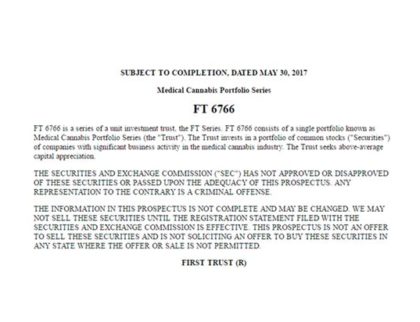 First Trust Files Prospectus for FT 6766 Medical Cannabis Portfolio Series Illinois-based fund manager First Trust, which manages over $100 billion in aggregate across a range of retail and...