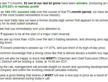 The SEC suspended two cannabis stocks this morning through June 5th, including Eco Science Solutions (ESSI) and Holy Grail Company (HGRL). According to the SEC, ESSI issued a press release...