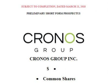 After the close, Cronos Group (TSXV: CRON) (NASDAQ: CRON) filed a Form F-10 with the SEC, indicating that it is planning to sell shares in the United States in...