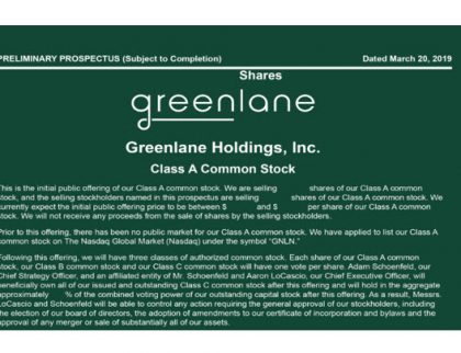 Greenlane Launches Initial Public Offering BOCA RATON, Fla., April 08, 2019–(BUSINESS WIRE)–Greenlane Holdings, Inc. (“Greenlane”), a leading distributor of premium vaporization products and consumption accessories, announced today that it...