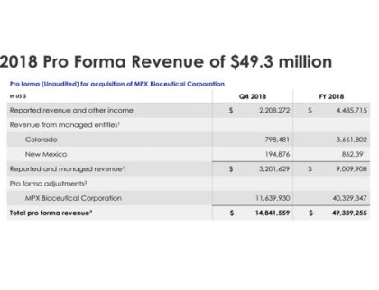 iAnthus Reports Fiscal First Quarter 2019 Financial Results Pro Forma Revenues of $18.5 Million, up 22% From Previous Quarter Revenue generating in nine of 11 states and a footprint...