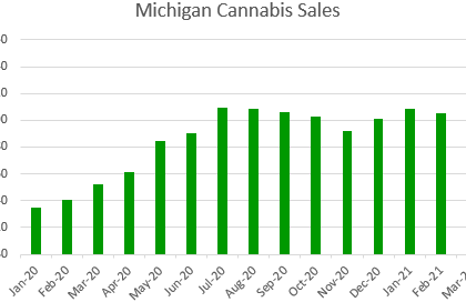 During February, Michigan cannabis sales increased 160% from a year ago to $105.2 million, a 3% decline from January due to 3 fewer days in the month: The Michigan Marijuana Regulatory Agency...
