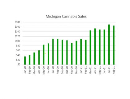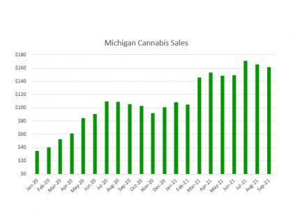 With one less day in September than August, Michigan cannabis sales slipped 2.5% to $161.4 million, up 52.5% from a year ago: The Michigan Marijuana Regulatory Agency breaks out sales...