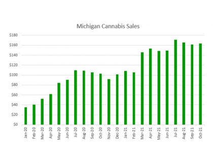 With an addition day compared to September, Michigan cannabis sales advanced 1.3% to $163.5 million, up 58.8% from a year ago: The Michigan Marijuana Regulatory Agency breaks out sales by...