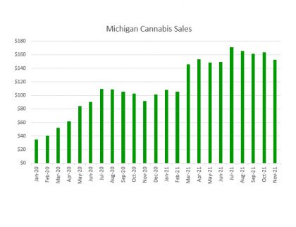 With one less day than October, Michigan cannabis sales fell 6.6% to $152.7 million in November, up 66.1% from a year ago: The Michigan Marijuana Regulatory Agency breaks out sales...