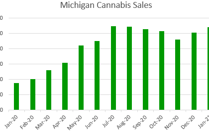 Michigan began 2021 with a 7.2% gain in overall cannabis sales, which reached $108.5 million, up 210% from a year ago: The Michigan Marijuana Regulatory Agency breaks out sales by...
