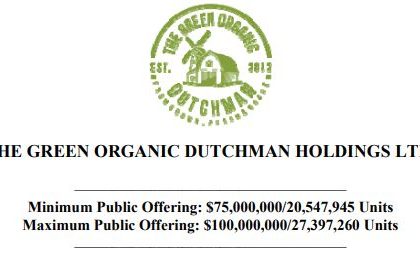 The Green Organic Dutchman Completes Initial Public Offering and Commences Trading on the Toronto Stock Exchange TORONTO, May 02, 2018 (GLOBE NEWSWIRE) — The Green Organic Dutchman Holdings Ltd....