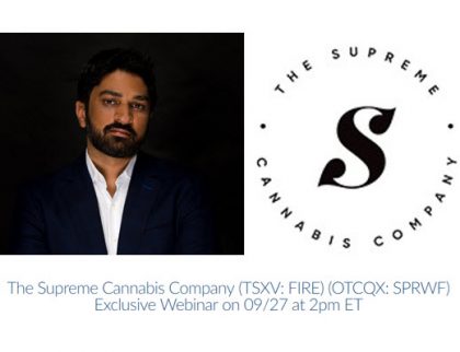 New Cannabis Ventures will be hosting a free exclusive webinar with Nav Dhaliwal, President and Director of The Supreme Cannabis Company, Inc., (TSXV: FIRE) (OTCQX: SPRWF) on Thursday, September...