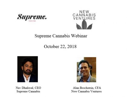 New Cannabis Ventures hosted Supreme Cannabis (TSXV: FIRE) (OTC: SPRWF) CEO Nav Dhaliwal for a webinar conducted on October 22nd. Dhaliwal, who was promoted from President to CEO last month,...