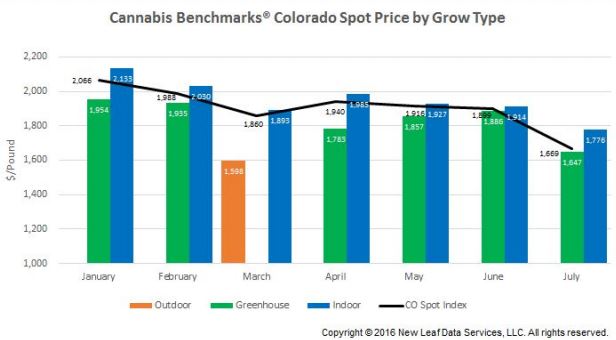 Another source that details the recent decline in Colorado prices is Cannabis Benchmarks: