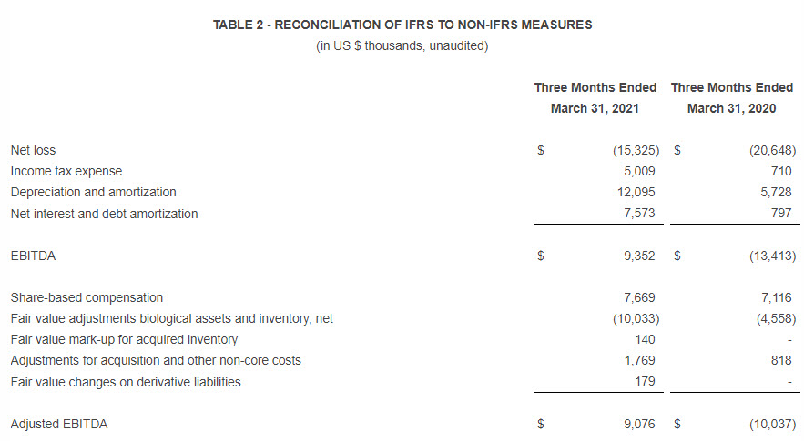 [1] Excludes changes in fair value of biological assets and inventory sold for all periods presented, as well as $1.4 million in Q4 2020 and $0.1 million in Q1 2021 related to the write-up of inventory acquired in The Green Solution, Project Cannabis and The Healing Center San Diego.