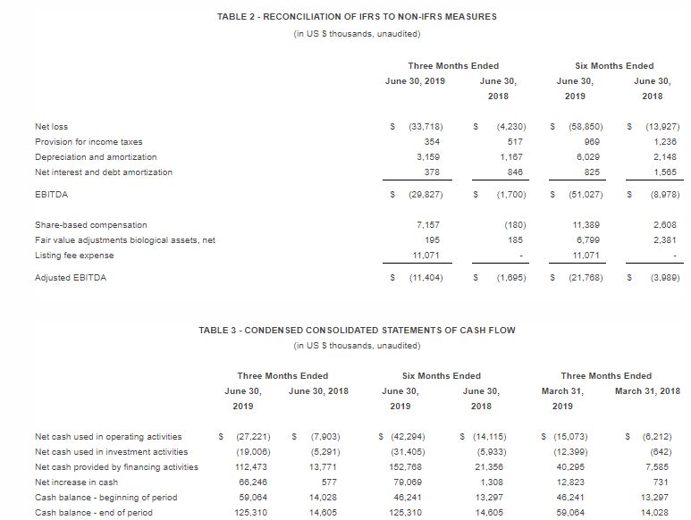 Excluding the impact of fair value adjustments for biological assets, gross profit in the second quarter of 2019 was $5.4 million, relatively unchanged from the second quarter of 2018. For the six-month period ending June 30, 2019, gross profit, excluding the impact of fair value adjustments for biological assets was $9.8 million, an increase of 12% compared to the prior year period.