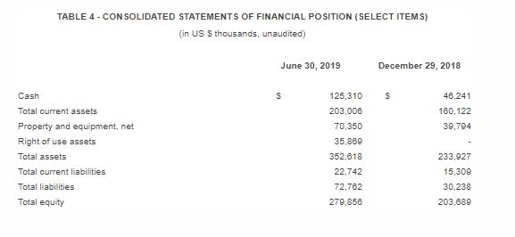 - $125.3 million cash on hand as of June 30, 2019, and no debt