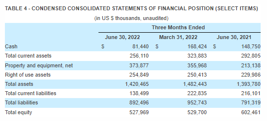 - Total of 84 active retail locations in operation; no new locations opened in Q2 2022