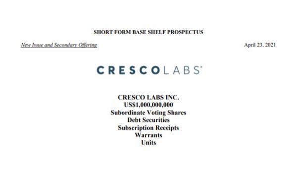 CHICAGO, April 26, 2021–(BUSINESS WIRE)–Cresco Labs Inc. (“Cresco Labs” or the “Company”) (CSE:CL) (OTCQX:CRLBF) (FSE:6CQ), a vertically integrated multistate operator and the number one U.S. wholesaler of branded cannabis products, today announced that a final base shelf prospectus, preliminarily filed on February 26th, 2021 (the “Shelf Prospectus”), replacing the Company’s prior shelf prospectus has been receipted with the securities commissions in each of the provinces of Canada. The Company also announced that a corresponding registration statement on Form F-10 (the “Registration Statement” and, together with the Shelf Prospectus, the “MJDS Shelf”) has been deemed effective by the U.S. Securities and Exchange Commission under the U.S./Canada Multijurisdictional Disclosure System.