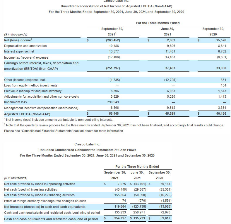 Cresco Labs Announces Third Quarter 2021 Financial Results