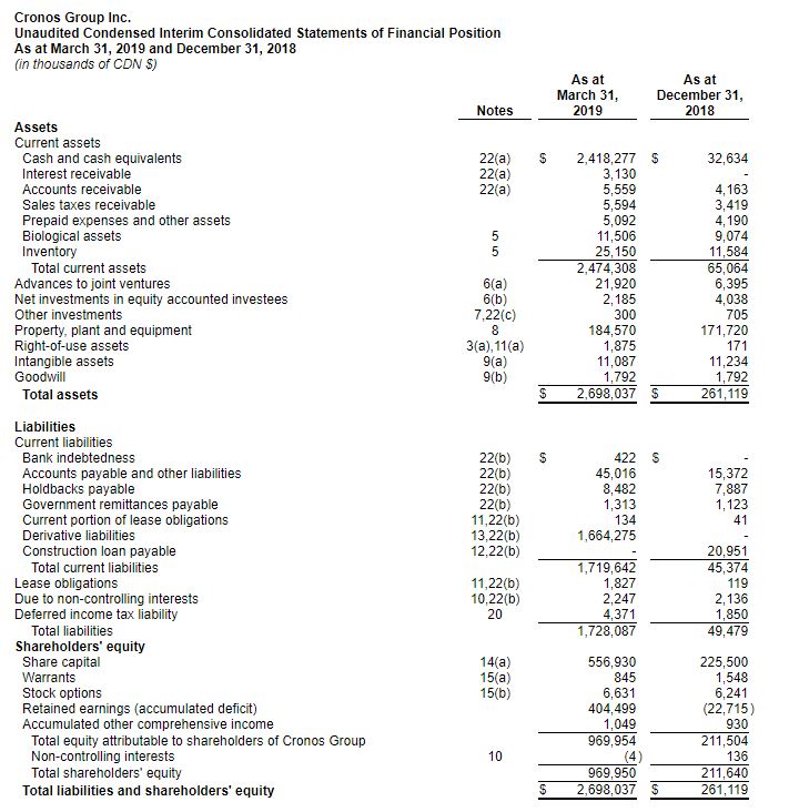 - Live audio webcast: https://ir.thecronosgroup.com/events/event-details/first-quarter-2019-earnings-conference-call