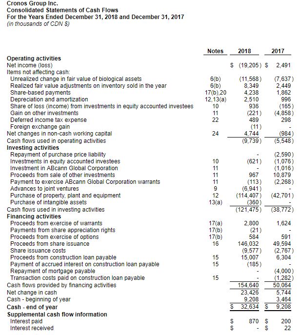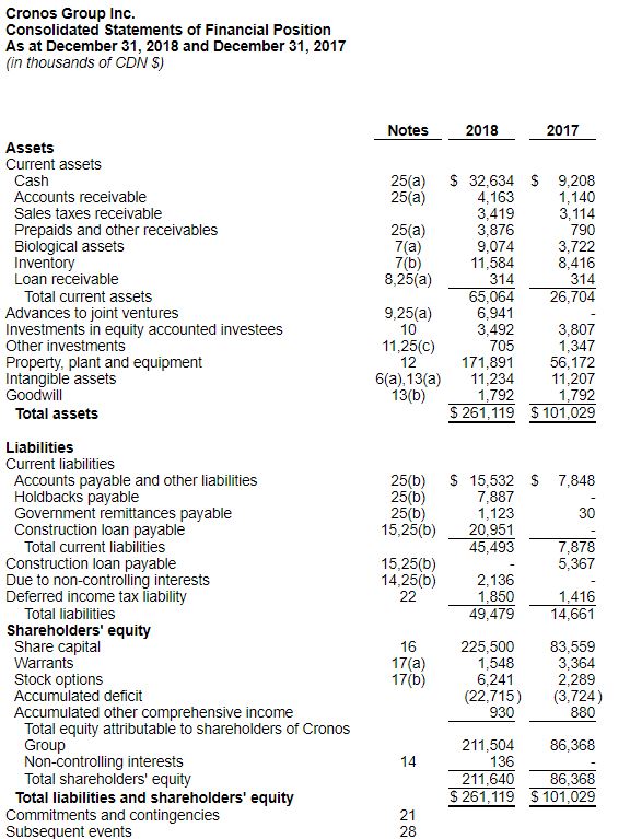 Additionally, the Company announced a venture with a group of investors led by Bert Mucci, a leading Canadian large-scale greenhouse operator. The entity created by this new partnership, Cronos Growing Company Inc. (“Cronos GrowCo”), expects to construct an 850,000 square foot, purpose-built, greenhouse on approximately 100 acres of land, owned by Cronos GrowCo in Kingsville, Ontario.