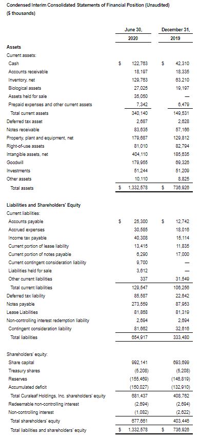 Curaleaf Reports Record Second Quarter 2020 Financial and Operational Results