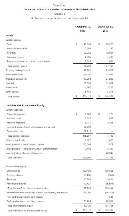The Company’s unaudited consolidated interim financial statements and accompanying notes as at and for the three and nine months ended September 30, 2018 are available under the Company’s profile on SEDAR at www.sedar.com and on the Investor Relations section of the Company’s website at ir.curaleaf.com.