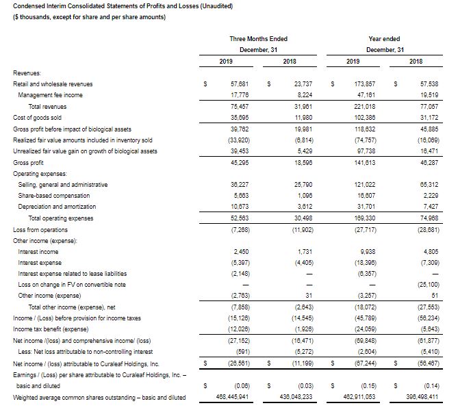 Joseph Lusardi, Chief Executive Officer of Curaleaf stated, “In fiscal 2019, the Curaleaf team delivered record results with our organic business growth and recent strategic acquisitions, solidifying our position as the leading cannabis operator in the United States.”