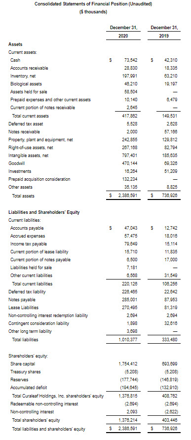 WAKEFIELD, Mass., March 9, 2021 /PRNewswire/ — Curaleaf Holdings, Inc. (CSE: CURA) (OTCQX: CURLF) (“Curaleaf” or the “Company”), a leading U.S. provider of consumer products in cannabis, today reported its financial and operating results for the fourth quarter and year ended December 31, 2020. All financial information is provided in U.S. dollars unless otherwise indicated.