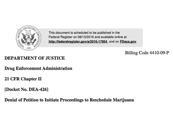 SUMMARY: By letter dated July 19, 2016 the Drug Enforcement Administration (DEA) denied a petition to initiate rulemaking proceedings to reschedule marijuana. Because the DEA believes that this matter is of particular interest to members of the public, the agency is publishing below the letter sent to the petitioner which denied the petition, along with the supporting documentation that was attached to the letter.