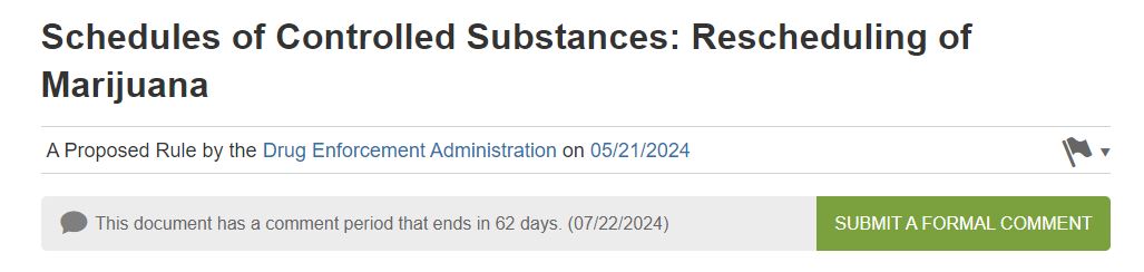 The Drug Enforcement Administration published its proposed rescheduling of cannabis today. There is a comment period that ends on July 22nd.