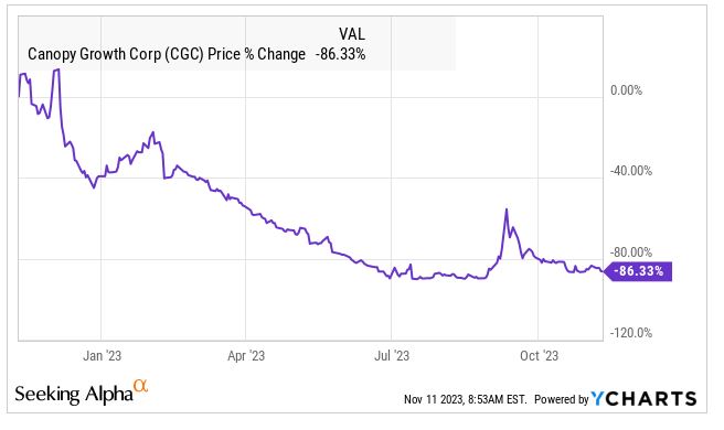 Since we wrote that last piece on Canopy Growth, it is up more than 35%, but it has dropped a lot over the last year and from its recent peak: