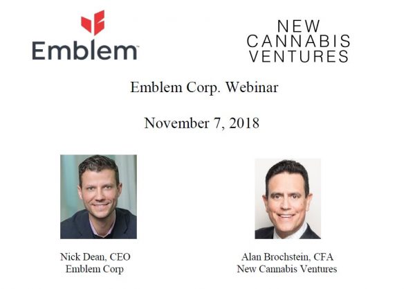 New Cannabis Ventures hosted Emblem Corp. (TSXV: EMC) (OTC: EMMBF) CEO Nick Dean for a webinar conducted on November 7th. Dean, an early investor in the company who joined as CEO earlier this year, discussed the company’s accomplishments, strategy and outlook. The slides can be downloaded here.