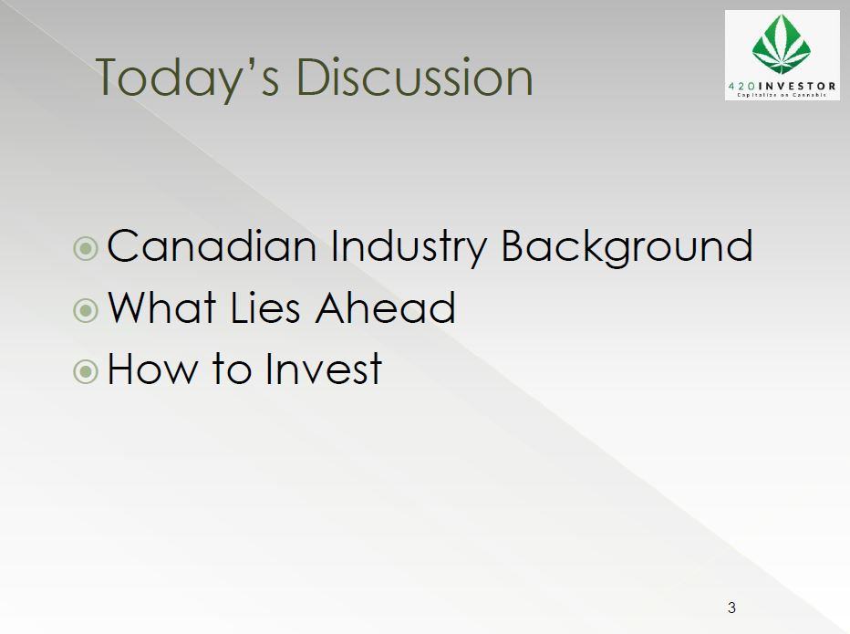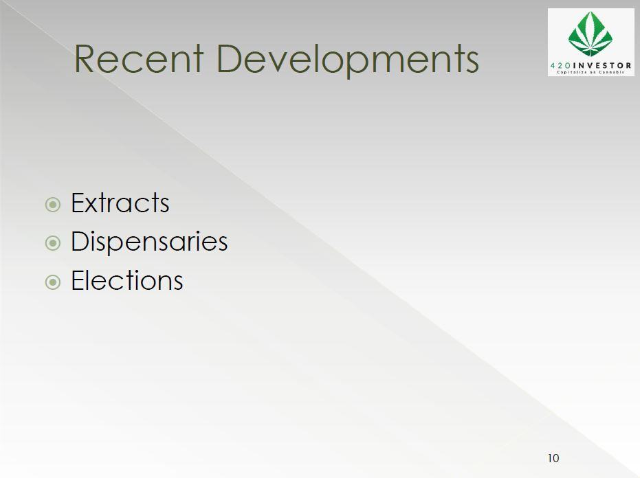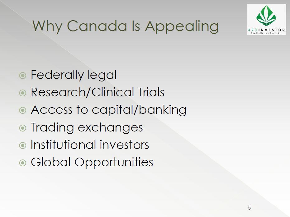 One of the biggest barriers to investing in cannabis companies is that it remains federally illegal. That is not the case in Canada, where a new system of regulated commercial production launched in 2014. That program, MMPR, is showing traction after a slow start, but the recent elections in Canada point to the strong likelihood that the country could become the first major nation to legalize cannabis consumption for adults. In his presentation, Alan discussed the background of the Canadian medical marijuana industry, the current leading providers and an outlook for the next few years.