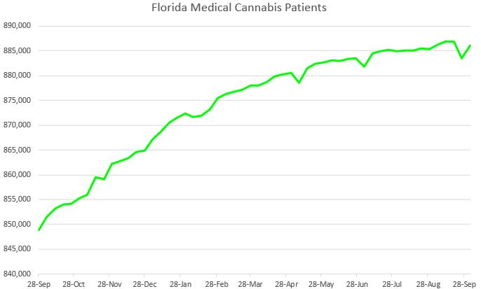 The post-pandemic population boom aided patient growth, and some program improvements have helped excite Florida residents. There has been an increase in dispensaries to 683 from 591 a year ago. This is an increase of 15.6%, which is much faster than the medical cannabis patient growth has been.